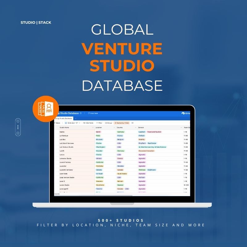 This comprehensive database contains critical information on all Startup Studios, Venture Builders, and Venture Studios from across the globe.